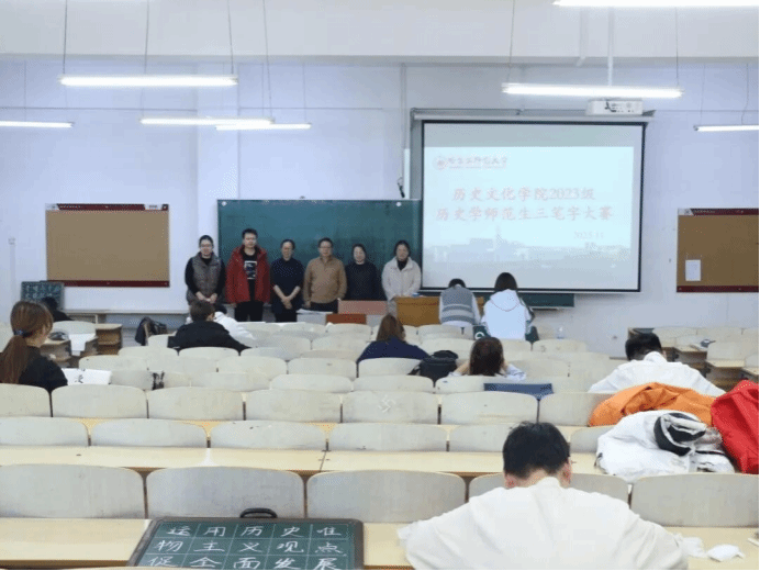 为深入学习贯彻习近平总书记关于“做新时代‘四有’好老师”的重要指示精神,弘扬中华优秀传统文化,夯实师范生教学基本功,2025年11月14日,历史文化学院在人文楼520教室举办了2023级历史学专业师范生三笔字大赛。