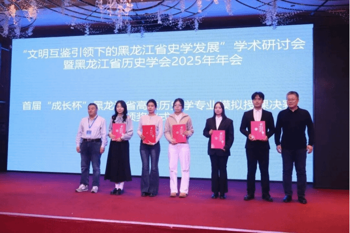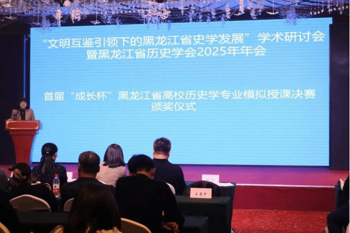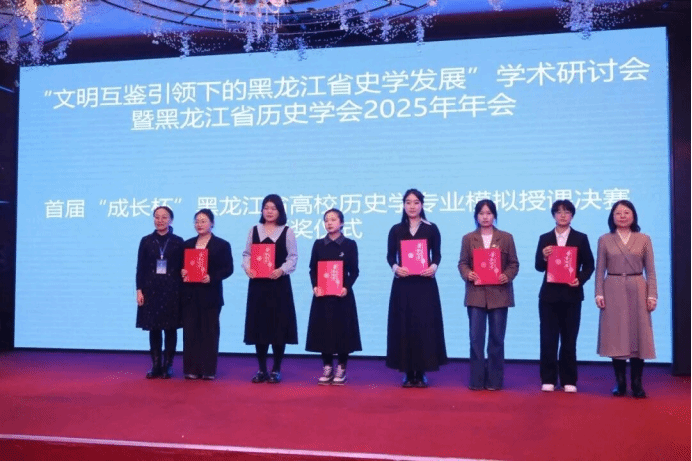 选手们的出色表现赢得了评委与现场观众的高度认可。最后,来自哈尔滨师范大学、牡丹江师范学院、佳木斯大学、黑河学院的6位选手分获各组一等奖;哈尔滨师范大学、黑龙江大学、齐齐哈尔大学、牡丹江师范学院、佳木斯大学10位选手分获各组二等奖。王耘、苏继红、邵兰琴、庞丽娟、张静、谭杰、汲长伟、李春艳8位教师获优秀指导教师。11月22日下午在黑龙江省历史学会2025年年会闭幕式上举行了隆重的颁奖仪式。