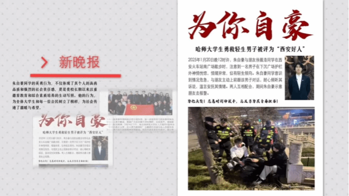 十佳荣光守初心,榜样力量绽芳华。为全面贯彻落实全国、全省教育大会精神,扎实推进新时代立德树人工程,集中展现我校青年学子昂扬向上的精神风貌,充分发挥先进典型的示范引领作用,哈尔滨师范大学第十届榜样·力量“感动校园十佳大学生(集体)”系列人物报道正式上线。报道聚焦我校学子在崇德向善、自强励志、创新创业、志愿服务、学术科研、民族团结、参军报国等方面的优秀事迹,生动彰显我校学子以实干践行使命、用担当书写荣光的时代风采。本期推介的是见义勇为、挺身而出的正义标杆——历史文化学院2023级旅游管理专业本科生朱自豪。