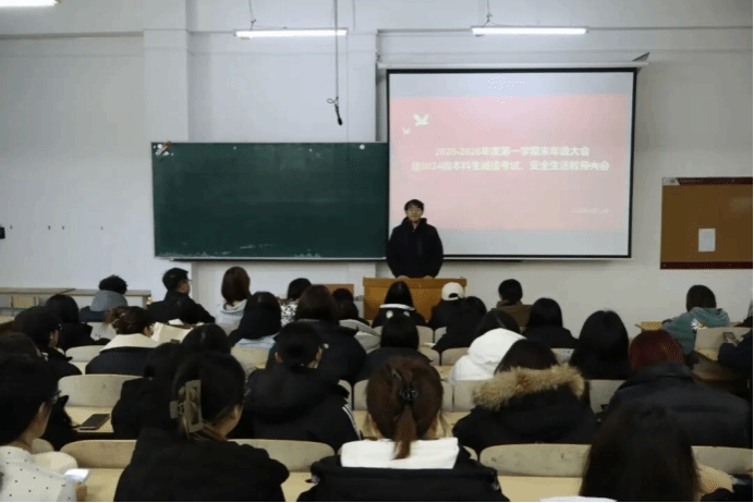 各年级辅导员围绕学生阶段性特点,全面开展了考试纪律与安全教育。在考风考纪方面,重点解读了考试管理规定与违纪处理办法,要求同学们自觉遵守考试纪律,共同维护良好的考风考纪与公平公正的考试环境。在安全教育方面,针对学生不同假期安排特点,各年级辅导员系统讲解了离校、旅途、居家等安全注意事项,特别提醒学生防范电信诈骗、注意交通安全、加强冬季防护,切实提升自我保护能力,确保度过一个平安充实的假期。