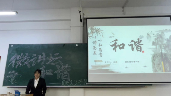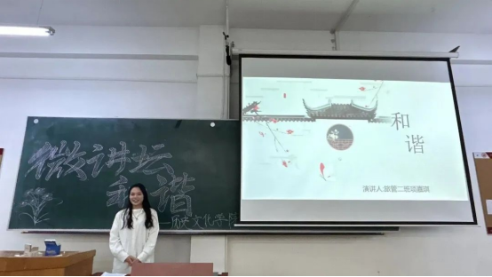 微讲坛活动大力培育和践行社会主义核心价值观,让同学们知道和谐的重要性,同时,增强了同学们对建设人与自然和谐共生现代化的认识,从而激励同学们养成绿色生活习惯,在日常生活中绿色出行、注意垃圾分类、注意节约用水用电等。