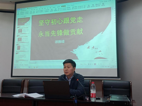 学院党委书记徐振岐同志以“坚守初心跟党走,勇当先锋做贡献”为题讲党课。他表示,面向新时代,要以历史眼光深刻理解中国共产党人的初心使命。为中国人民谋幸福,为中华民族谋复兴,是中国共产党的初心使命。这可以从历史和现实两个维度来认识,从历史的维度看,中国人民从站起来到富起来的伟大飞跃是中国共产党守初心担使命的真实写照。从现实的维度看,中国人民从富起来到强起来,肩负实现中华民族伟大复兴的梦想是中国共产党守初心担使命的真实写照。