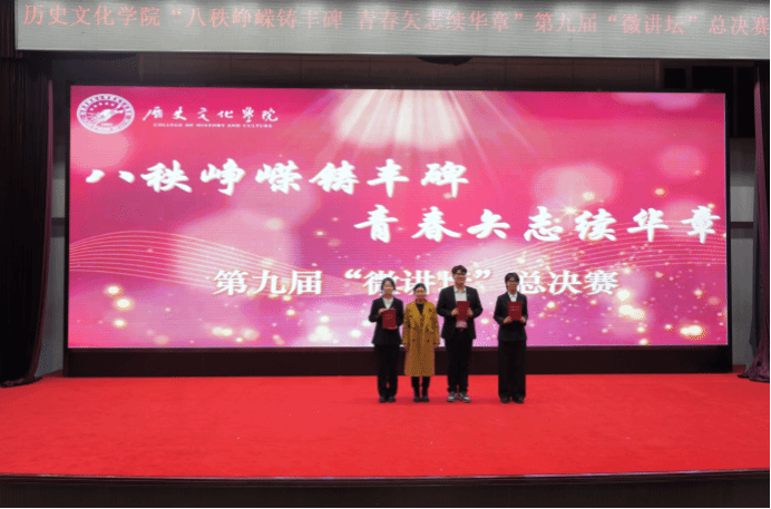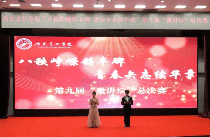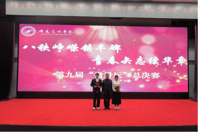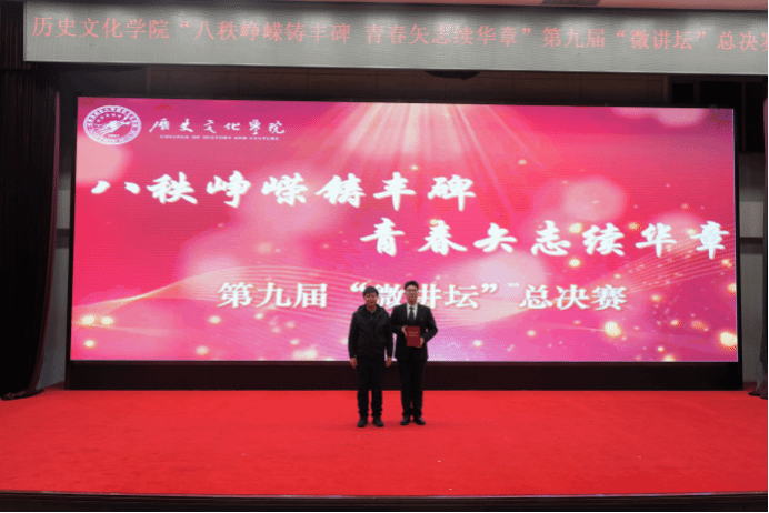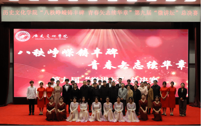 (陈廉颢/文)为深入贯彻“以文化人、以文育人”教育理念,厚植学生家国情怀,提升学生专业素养,引领团员青年深入领会习近平总书记“用好红色资源、赓续红色血脉”重要讲话精神,2025年10月22日,历史文化学院“八秩峥嵘铸丰碑,青春矢志续华章”第九届“微讲坛”总决赛在科学会堂二楼报告厅举行。张欣、解洪兴、赵慧敏老师受邀担任比赛评委,学院党委书记徐振岐、党委副书记李斌、教师代表、全体辅导员老师及2024级、2025级学生代表参加本次活动。