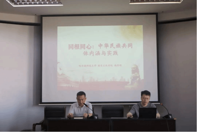 为深入学习中华民族共同体的深刻内涵,感悟各民族交往交流交融的历史脉络,凝聚团结奋进的精神力量,铸牢中华民族共同体意识,2025年6月18日,历史文化学院在人文楼516会议室举办“同根同心:中华民族共同体内涵与实践”专题讲座。本次讲座由中国古代史教研室主任韩厚明老师主讲,学院党委书记徐振岐、哈尔滨传媒职业学院党委副书记、副院长张宇飚等领导老师及学院少数民族学生代表参加讲座,学院党委副书记李斌主持讲座。