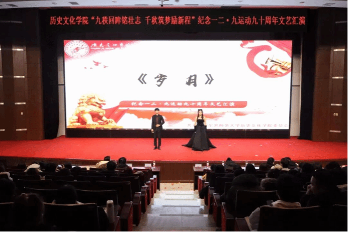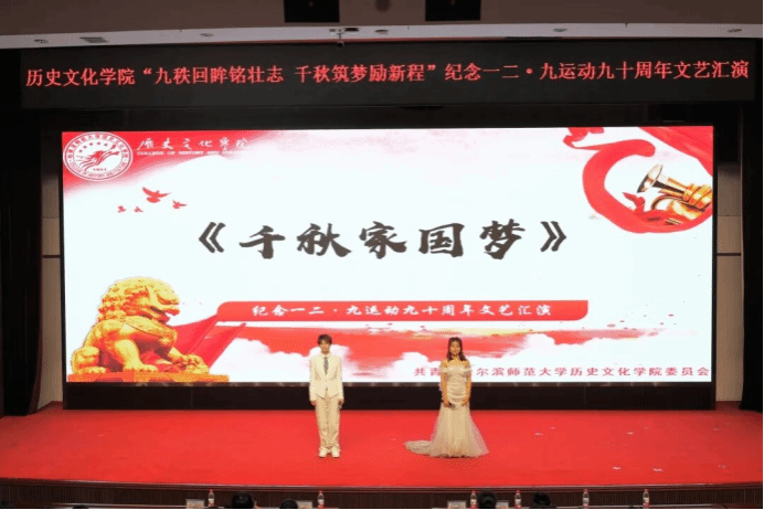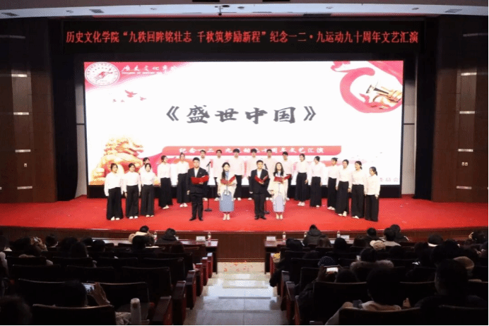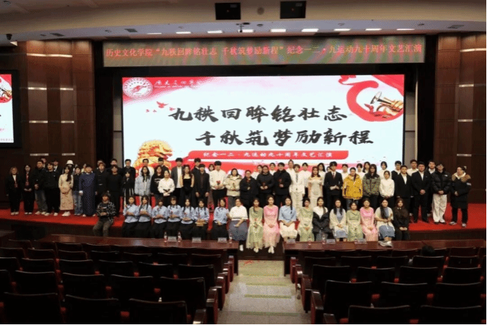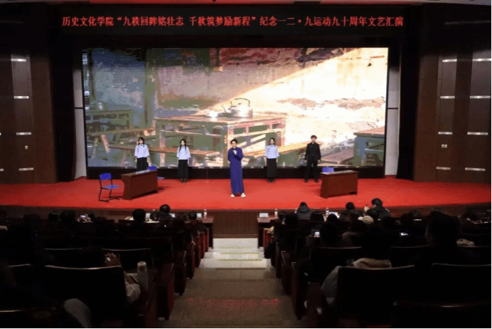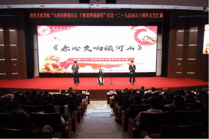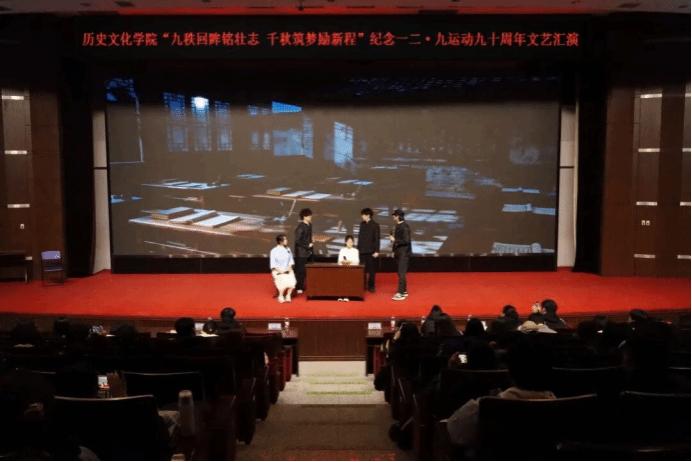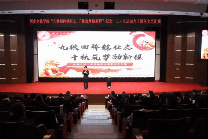 (陈廉颢/文)为铭记一二·九运动峥嵘历史,传承爱国报国精神,凝聚青年奋进力量,2025年12月2日,历史文化学院在科学会堂举办“九秩回眸铭壮志,千秋筑梦励新程”纪念一二·九运动九十周年文艺汇演。学院领导、辅导员老师与学生代表参与活动,共同缅怀历史、致敬先烈、共抒家国情怀。