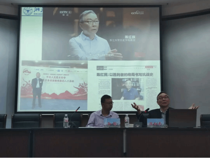 为纪念中国人民抗日战争暨世界反法西斯战争胜利80周年,9月9日上午9时,学院特邀浙江大学陈红民教授以《抗战为什么赢:漫谈抗日战争史研究的几个问题》为题,在人文楼516室举办学术讲座,本次讲座由历史文化学院副院长孙瑜主持,历史文化学院副院长刘丽丽及学院部分师生共同聆听了此次讲座。