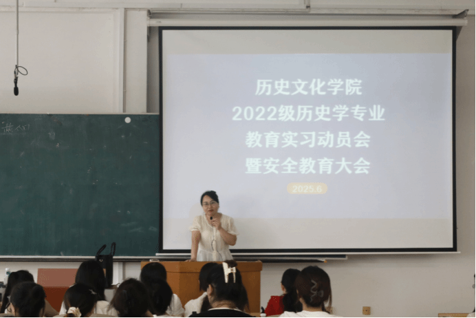 (韩宇彤/文)为扎实推进教育实习工作,强化学生安全意识,6月30日,历史文化学院于人文楼212教室成功召开2022级历史学专业教育实习动员会暨安全教育大会。学院教科办教师程方、李静,带队教师王鹤、张黎黎,指导老师苏继红、杨梦宇、王阳,2022级辅导员赵秀影及全体2022级历史学专业学生参会。会议聚焦明确实习任务、部署工作安排与强化安全指导,为同学们顺利开启并完成实习保驾护航。